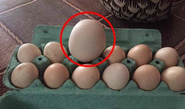 Femeia a gasit in cotetul gainilor un ou de trei ori mai mare decat cele normale.