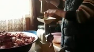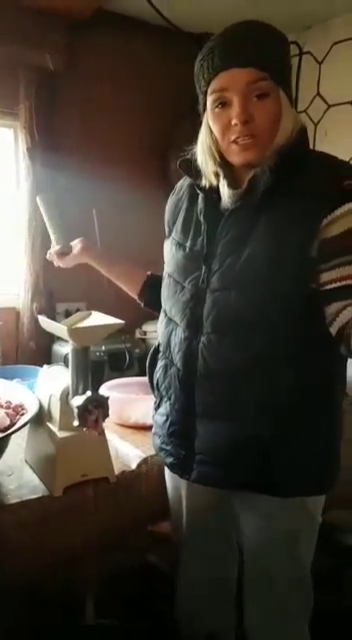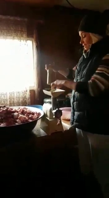 Ea a sortat, taiat si tocat carnea de porc, ca mai apoi sa umple metri intregi de carnati cu compozitia respectiva in timp ce canta colinde. Bucuroasa ca are parte de ajutoare, mama Mariei Constantin si-a filmat fiica cu ajutorul telefonului mobil.
