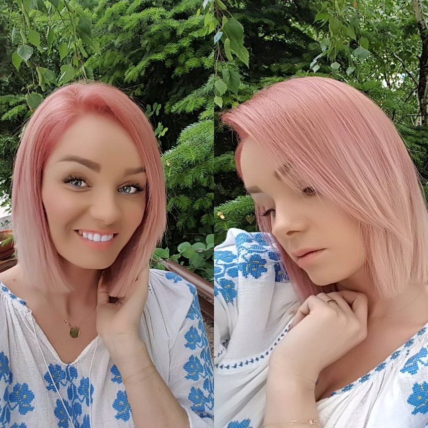 "Ieri blonda, azi rozalinda!", a scris ea pe Facebook.