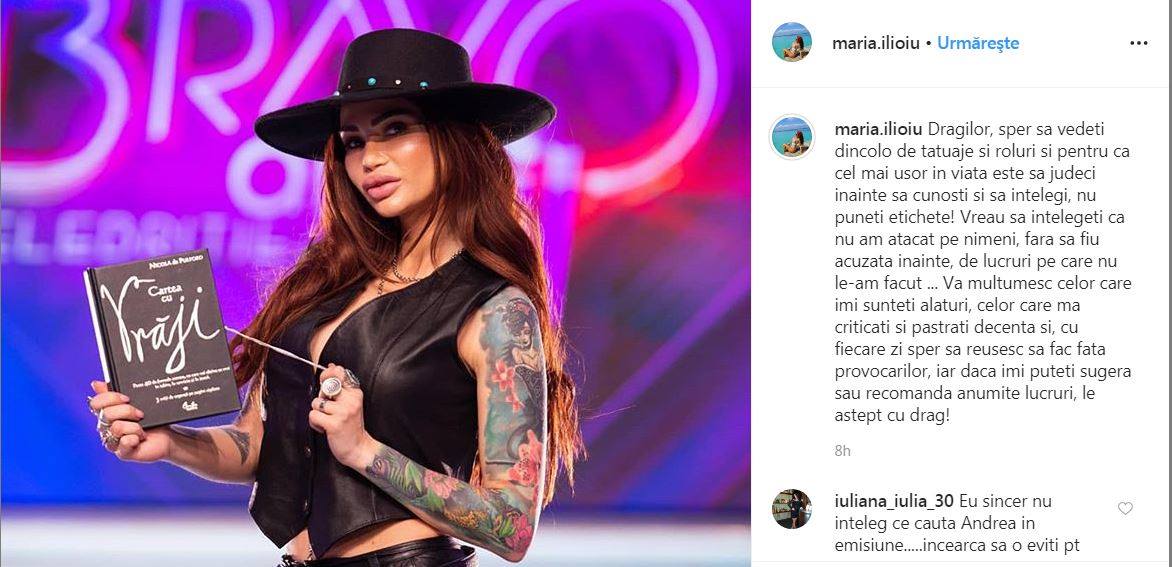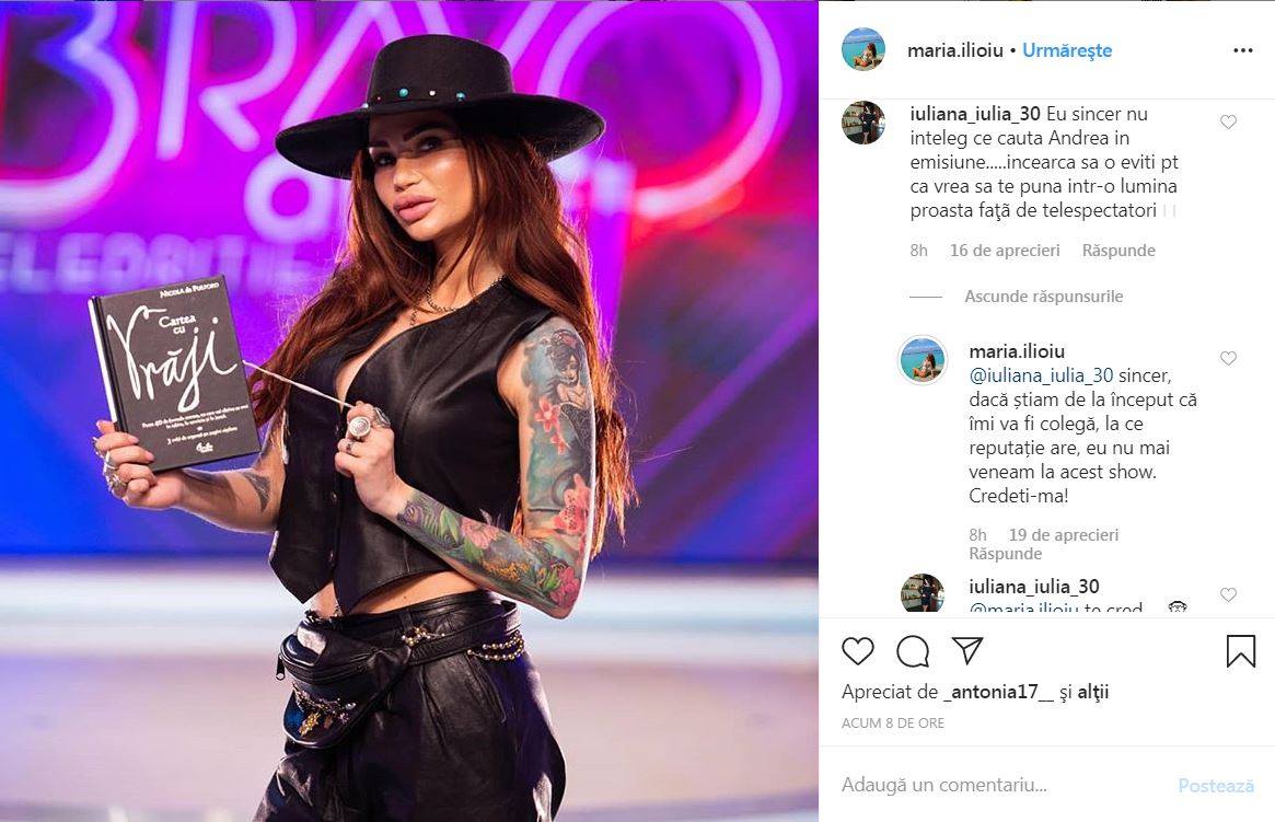 Maria Ilioiu a comentat dur pe contul ei de Instagram atitudinea Andreei Tonciu la adresa ei, în cadrul emisiunii „Bravo, ai Stil! Celebrities!”.