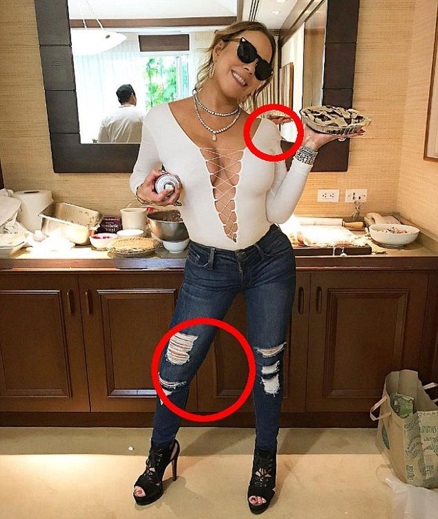 Mariah Carey s-a facut de ras! A editat o poza inainte sa o posteze si a dat chix. Admiratorii care au vazut imaginea s-au prins imediat ca a folosit Photoshop-ul.( Mariah Carey, aparitie de infarct! N-a purtat sutien si i-au iesit sfarcurile la inaintare prin rochia alba, mult prea subtire. AICI sunt imaginile)