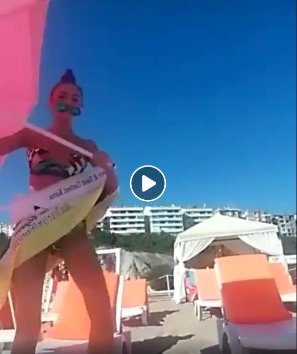 Îmbrăcată doar într-un costum minuscul, Mariana s-a dezlănțuit în fața camerei de filmat. Pentru că nu era suficient decorul, concurenta a apelat și la o umbrelă de pe plajă, cu care a dansat secunde în șir.