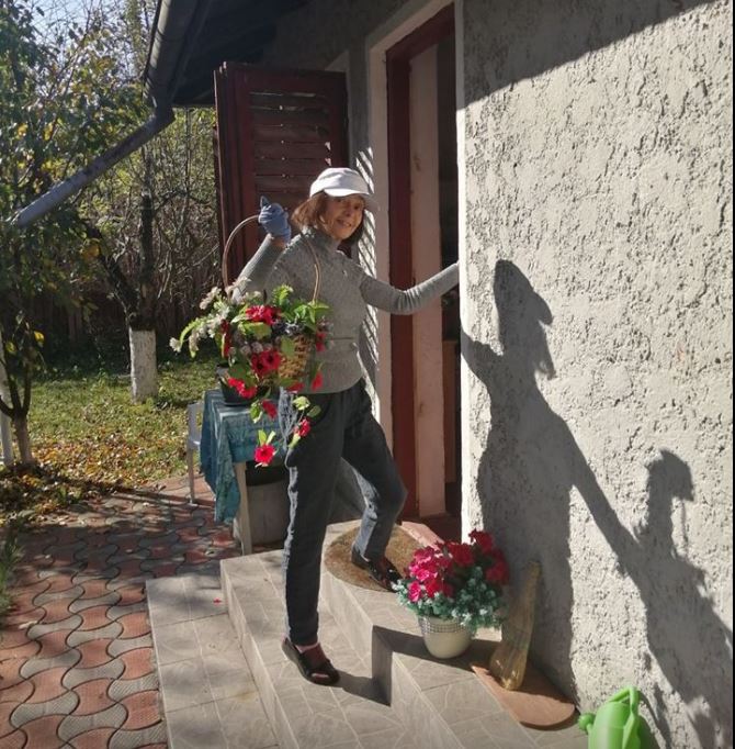 În urmă cu câteva zile, pe pagina ei de socializare a artistei a fost postată o imagine cu aceasta în pragul casei, în timp ce, profitând de vremea încă frumoasă, Marina Voica echipată de treabă, cu șapcă pe cap și mănuși, ducea din florile din grădină în casă.