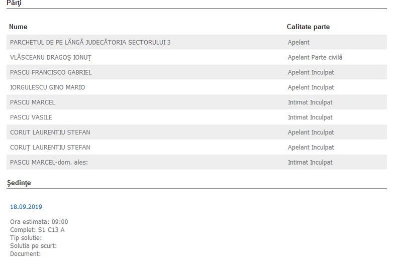 La procesul pe fond, toți inculpații au fost condamnați cu excepția lui Mario Iorgulescu, care a fost achitat pentru acuzația de complicitate la lipsire de libertate. Cu toate acestea, avocații au cerut apel în numele inculpaților dar și a lui Mario Iorgulescu. Ajunsă la apel, acțiunea judecătorească are un nou termen pe mieruci, pe 18 septembrie.