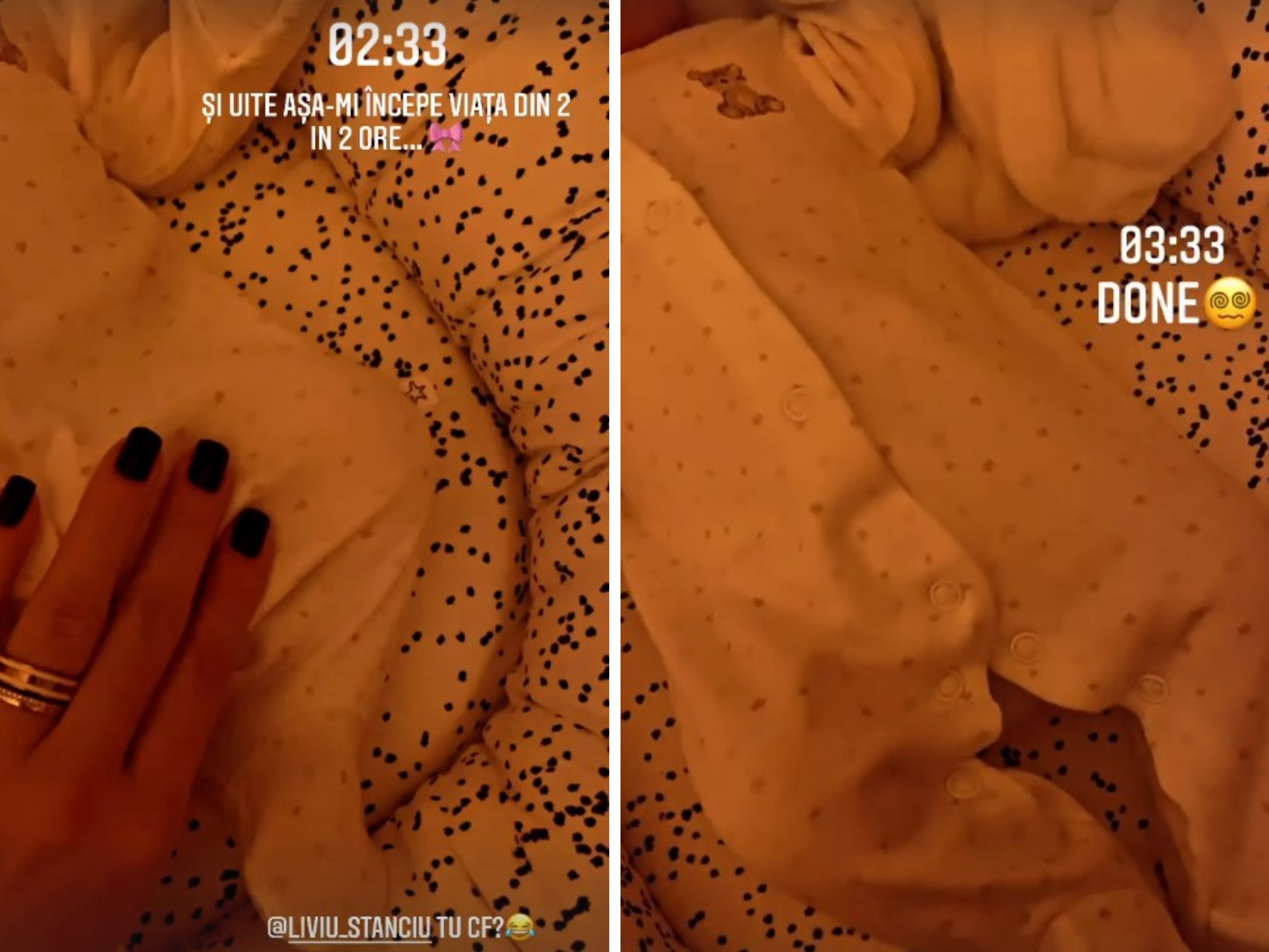 Pe InstaStory, acolo unde este foarte activă și își ține mereu fanii la curent cu tot ceea ce se întâmplă, Maria Paloma a imortalizat și câteva momente din prima noapte acasă, alături de bebeluș. Se pare că aceasta s-a înarmat cu multă răbdare, căci a avut nevoie. Proasăta mămică a „păzit-o” pe fetița care se pare că nu a cam vrut să o lase să doarmă.