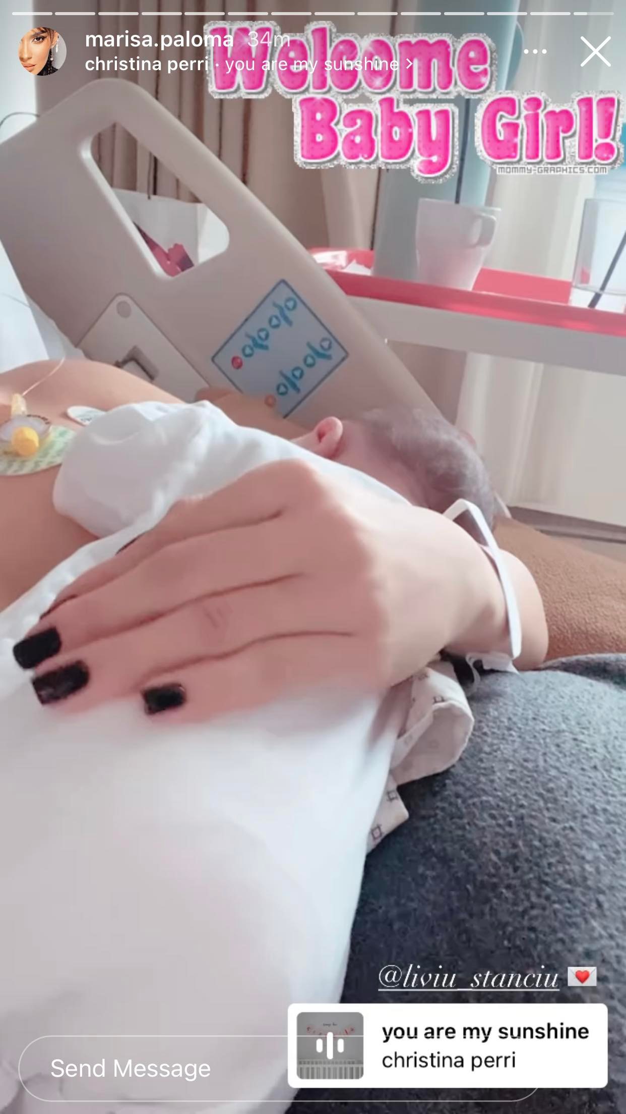 Tânăra nu s-a putut abține și a postat pe Instagram prima imagine cu fetița ei, al cărui nume îl ține deocamdată secret. Marisa Paloma a publicat alături de poză și o melodie foarte emoționantă: ”You are my sunshine- Tu ești soarele meu”.