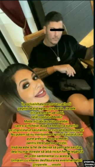 Cei doi s-au despărțit, însă acum există ceva care-i leagă poate pe vecie: un copil! Meda anunța, recent, că urmează să devină pentru prima dată mămică, fiind în culmea fericirii de când a aflat că va avea un bebeluș. Se pare că blondina nu s-a gândit niciodată să facă întrerupere de sarcină, însă tatăl micuțului din pântecul ei i-a propus acest lucru. Ba mai mult decât atât, Gabi ar fi împins-o de la spate pe Meda spre a lua această decizie importantă din viața ei.
