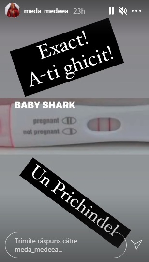 Meda a luat pe toată lumea prin surprindere după ce a postat un test de sarcină pozitiv pe contul său de socializare. Acest lucru înseamnă că frumoasa blondină așteaptă un bebeluș. Alături de fotografia postată, Meda a mai scris: "Exact! Ați ghicit! Un prichindel!".