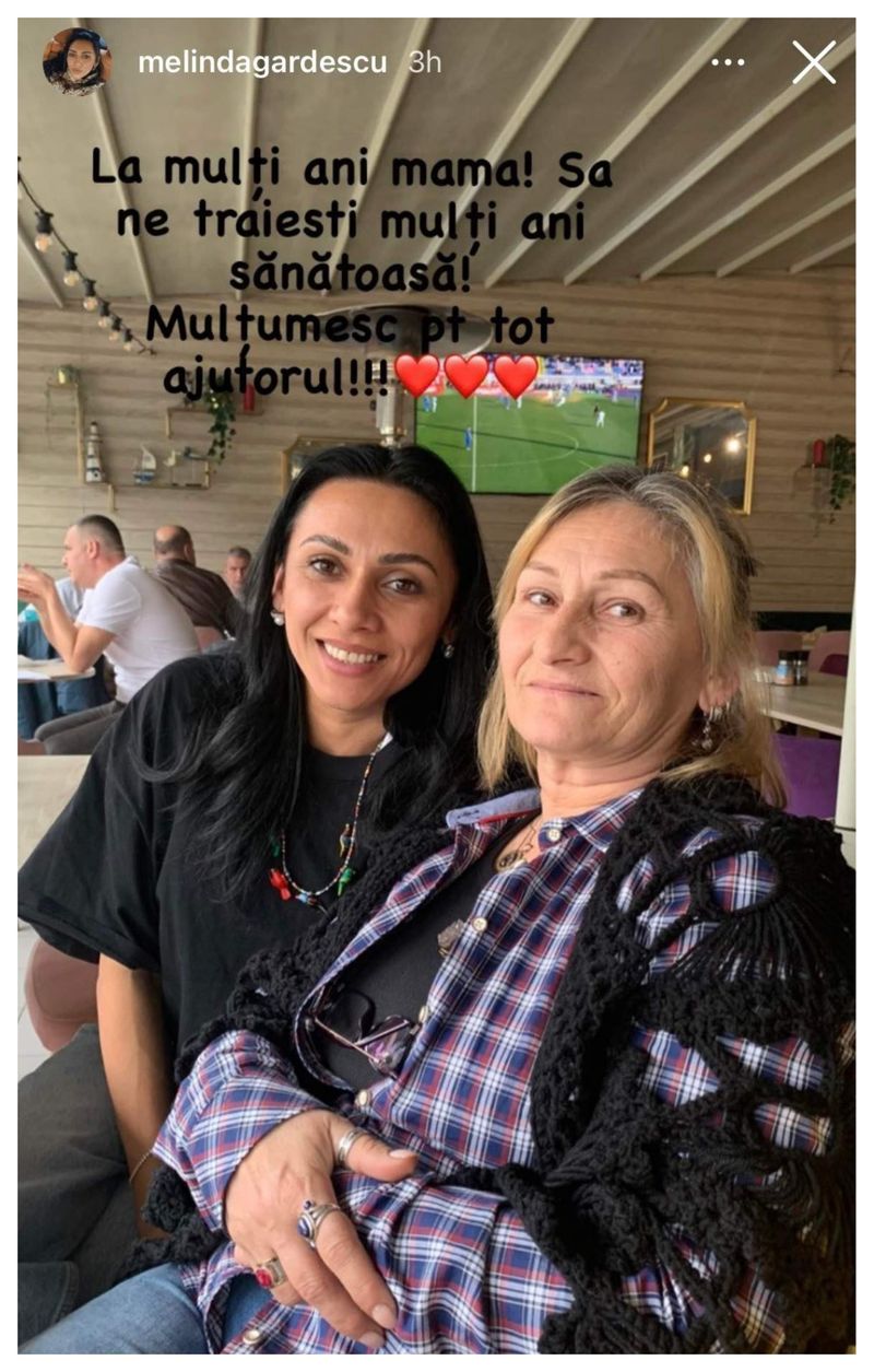 „La mulți ani mamă! Să ne trăiești mulți ani sănătoasă. Mulțumesc pentru tot ajutorul!”, a scris Melinda, în dreptul imaginii cu mama sa.