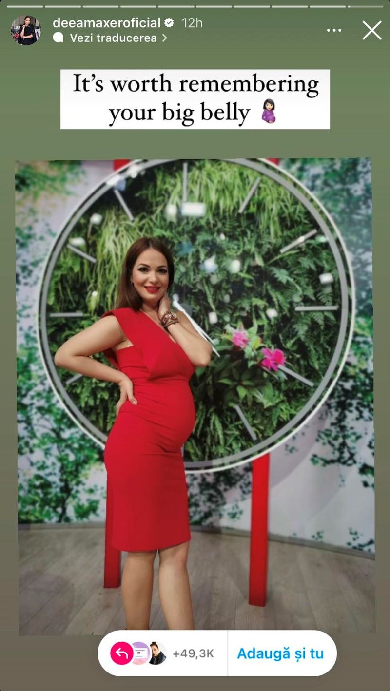 Bruneta nu s-a putut abține și a publicat o imagine cu ea în care are burtică de graviduță, arătându-le tuturor cât de bine arată însărcinată. Ei bine, fotografia nu este din prezent, așa cum probabil au crezut mulți oameni la o primă vedere, ci de pe vremea când Deea era însărcinată cu fiica ei, Maysa. Alături de fotografie, vedeta a transmis și un mesaj clar în care specifica acest lucru, mărturisind că și-a amintit de burtica pe care o avea când se pregătea să devină mamă pentru a doua oară.