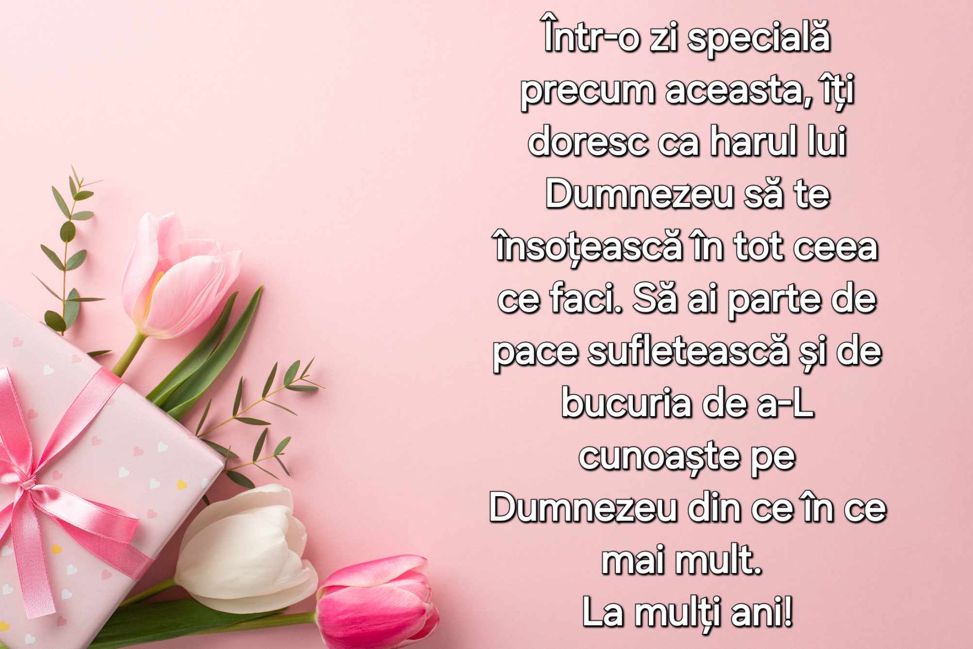 - La mulți ani! Îți doresc ca Dumnezeu să-ți deschidă uși noi și să-ți ofere oportunități minunate. Să fii un exemplu de credință și iubire pentru cei din jur.