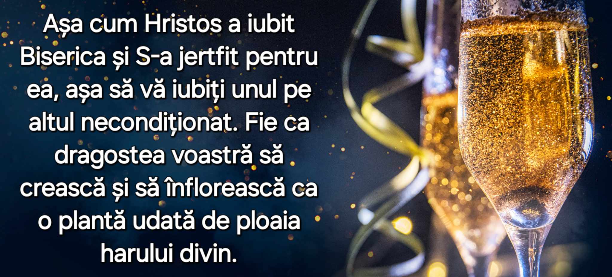 - La mulți ani fericiți împreună! Să fiți un exemplu de credință și iubire pentru cei din jur. Dumnezeu să vă călăuzească pe căile vieții și să vă ofere tot ce aveți nevoie.
