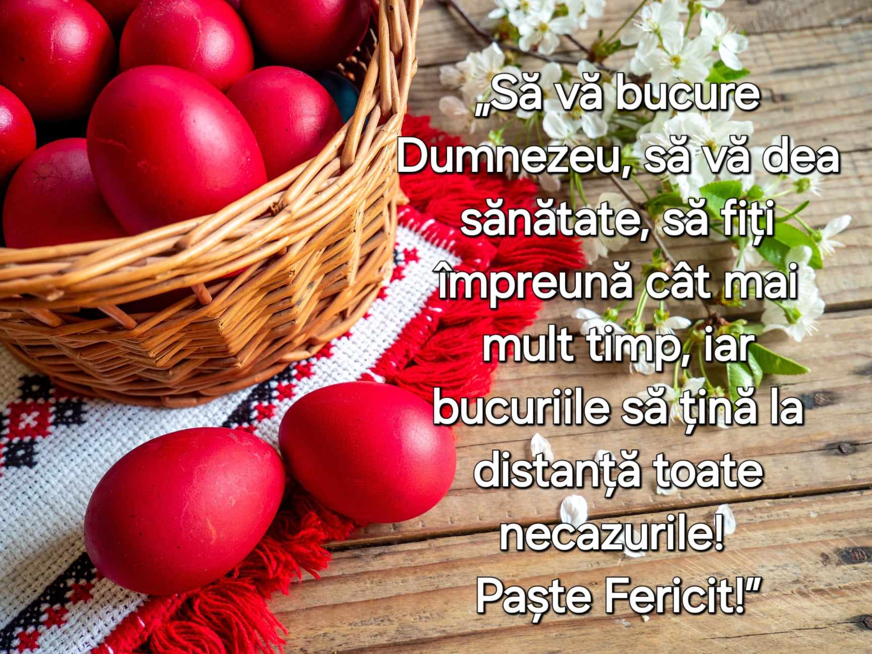 -Liniște sufletească, belșug și lumină să vă aducă Sărbătoarea Învierii Domnului. Paște Fericit!;