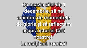 Ziua Națională a României este ziua tuturor românilor. Pe 1 decembrie 2024 trimite un mesaj special tuturor celor pe care îi cunoști, alegând unul dintre mesajele de mai jos.