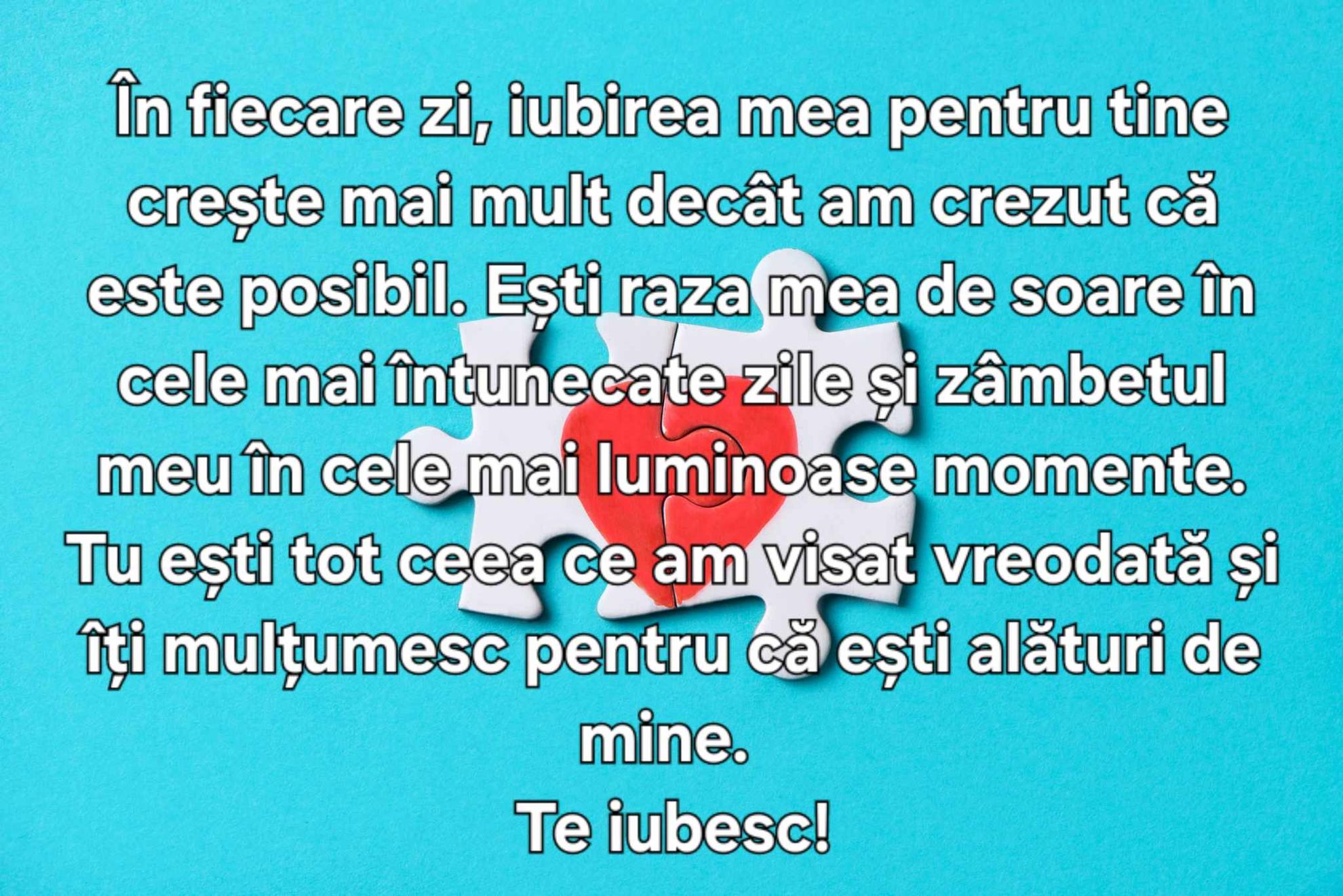 -Să vă completați unul pe celălalt ca două piese de puzzle și să formați împreună o imagine minunată a iubirii adevărate. La mulți ani de Ziua Îndrăgostiților!