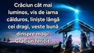 Sărbători Fericite și numai bucurii! Fie ca Pruncul născut în ieslea din Bethleem să vă umple casele și viețile cu bucurie, sănătate și multă înțelepciune pentru anul care vine. Crăciun fericit!