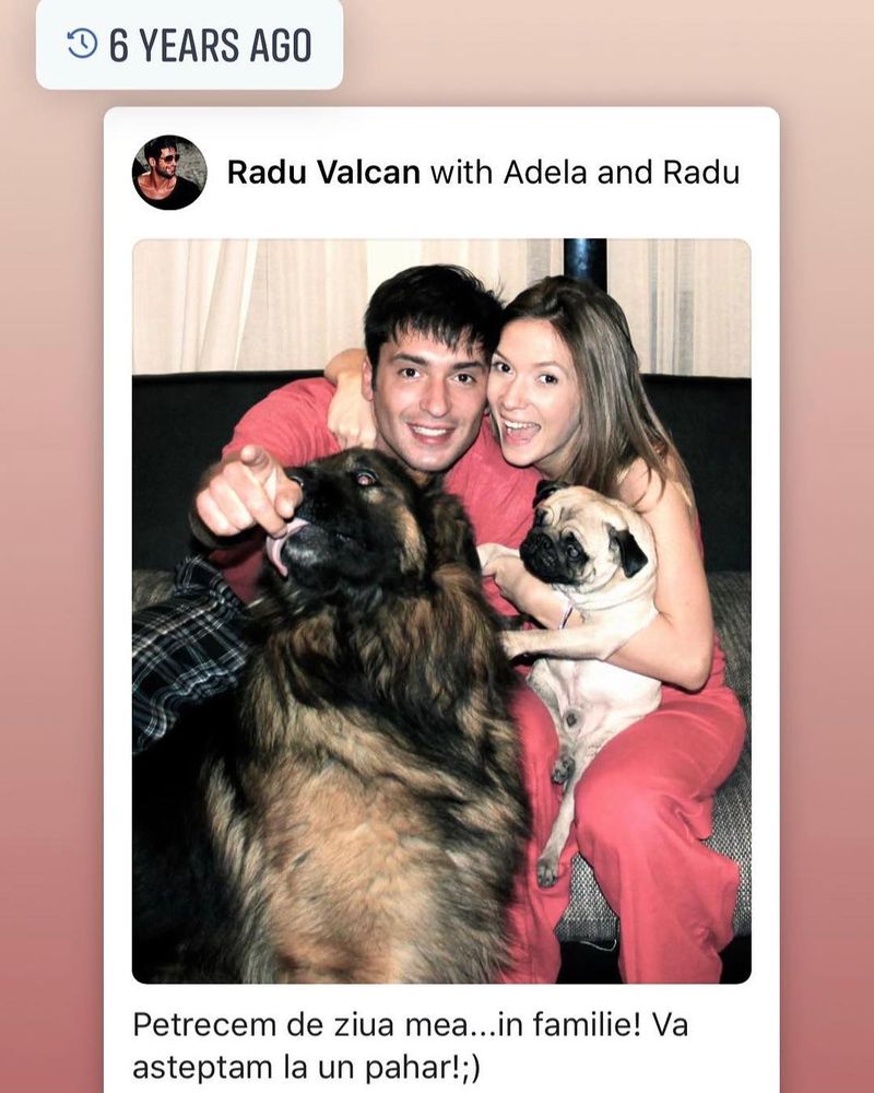 „Acum șase ani aveam doi câini, patru vacanțe la activ, multe dimineți cu cafea și nopți cu filme, înghețată și vin roșu. Acum avem doi puiuți, multe nopți nedormite și la fel de multe dimineți cu cearcăne. Dar e tot ce mi-am dorit. La mulți ani, bătrânelule!”, a scris Adela Popescu, în dreptul fotografiei postate.