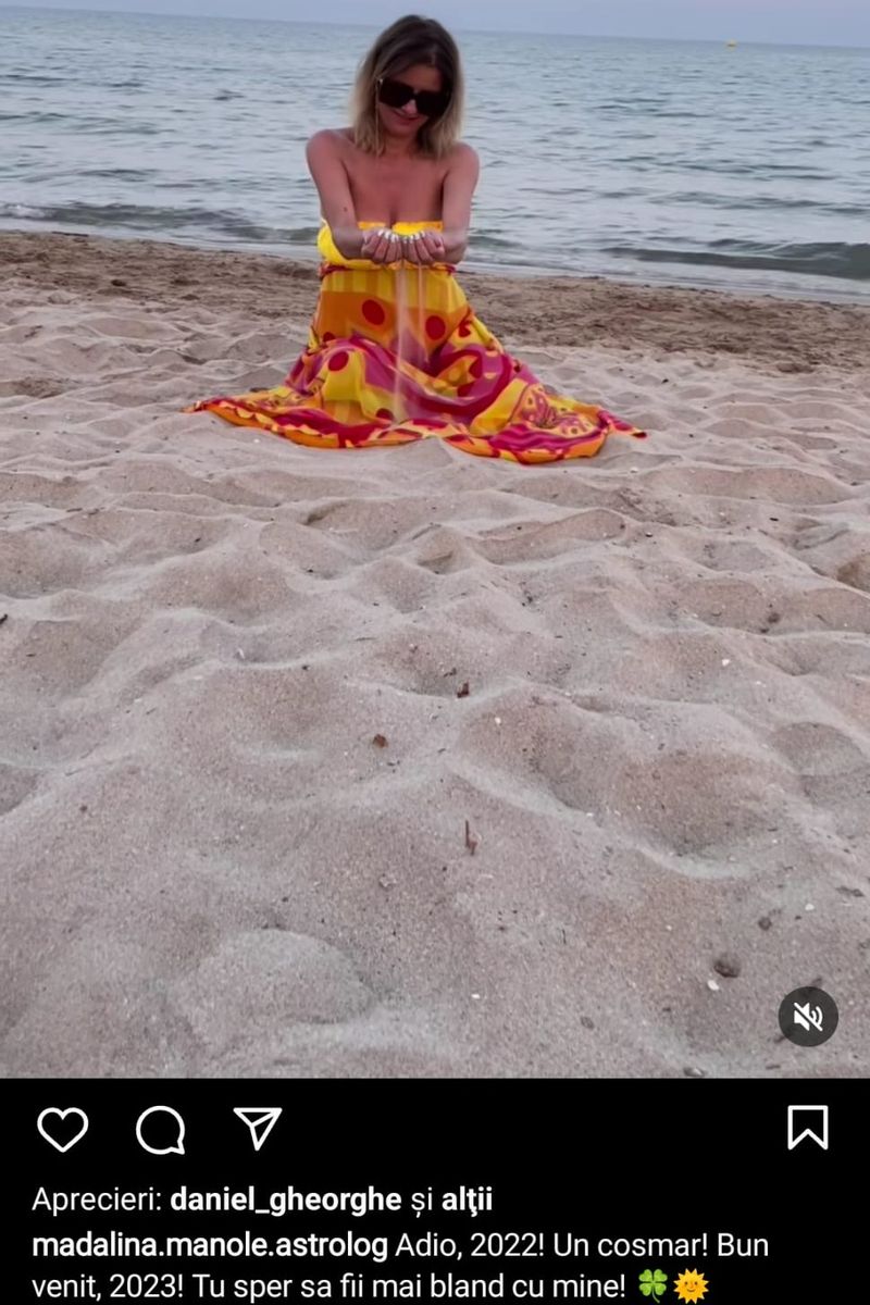 Pe data de 1 ianuarie, însă, Mădălina Manole a scris un mesaj pe pagina personală de Instagram, fără ca nimeni să-și imagineze că o astfel de tragedie era pe cale să se petreacă: „Adio, 2022! Un coșmar! Bun venit, 2023! Tu sper să fii mai blând cu mine!”, a scris astrologul Mădălina Manole, în dreptul unei imagini unde apare la malul mării.