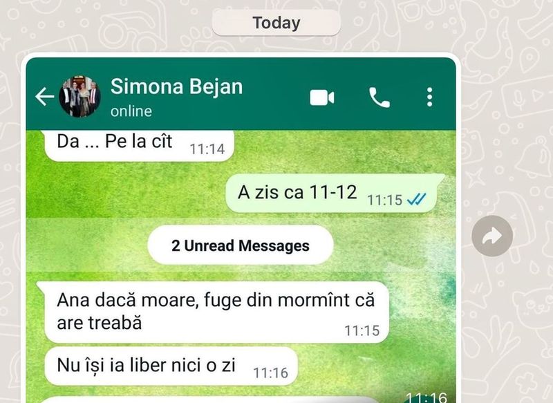 Cât timp a fost pe masa de operații, sub anestezie generală, oamenii care lucrează pentru Ana Morodan au avut un schimb de mesaje neașteptat. Când s-a dezmeticit și și-a luat telefonul în mână, influenceriței nu i-a venit să creadă ce conversație au purtat aceștia. Pentru că nu s-a putut abține, blondina a făcut public totul: „Colegii mei de la #theMoffice ieri cât eram în operație”, a scris Ana Morodan la descrierea imaginii cu mesajele care sună așa: „Ana, dacă moare, fuge din mormânt că are treabă. Nu își ia liber nici măcar o zi”, este mesajul unui prieten de-al ei.