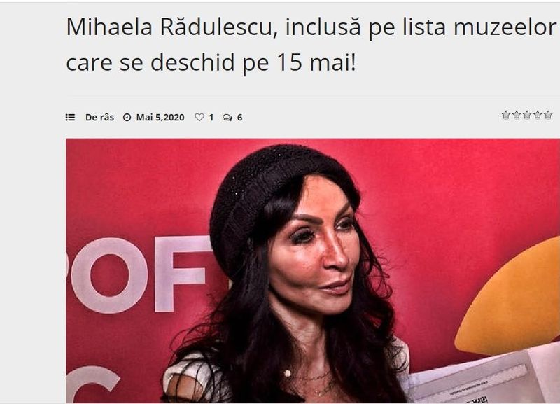Fotografia nu a avanatajează deloc, pentru că lumina îi bate direct în față, care apare îmbătrânită, punînd în evidență nasul, pomeții și sprâncenele. “Mihaela Rădulescu, inclusă pe lista muzeelor care se deschid pe 15 mai!”, au postat, în glumă, cei de la Kamikaze.