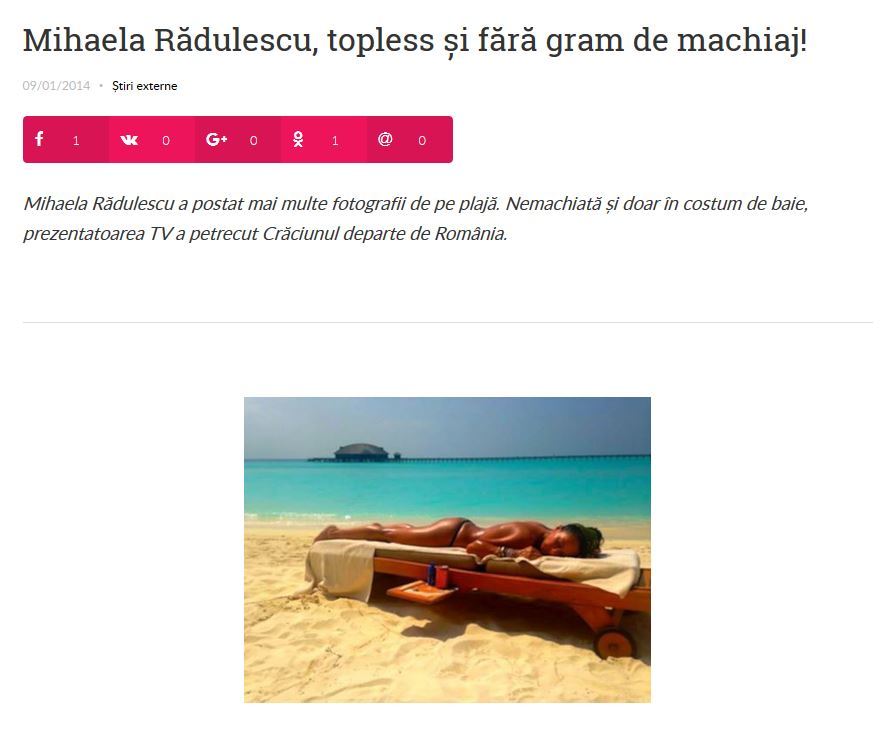 Diva a omis insa sa specifice faptul ca imaginea a fost realizata cu 4 ani in urma, cand Mihaela a fost in vacanta intr-o locatie exotica alaturi de fiul ei, Ayan. Imaginea a fost usor modificata, insa toate elementele care o compun sunt asezate fix in aceeasi pozitie. Doar protagonista era cu 4 ani mai tanara...