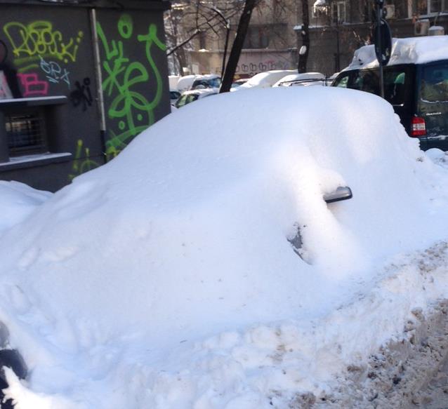 Masina lui Horia Moculescu se afla sub un strat gros de zapada.