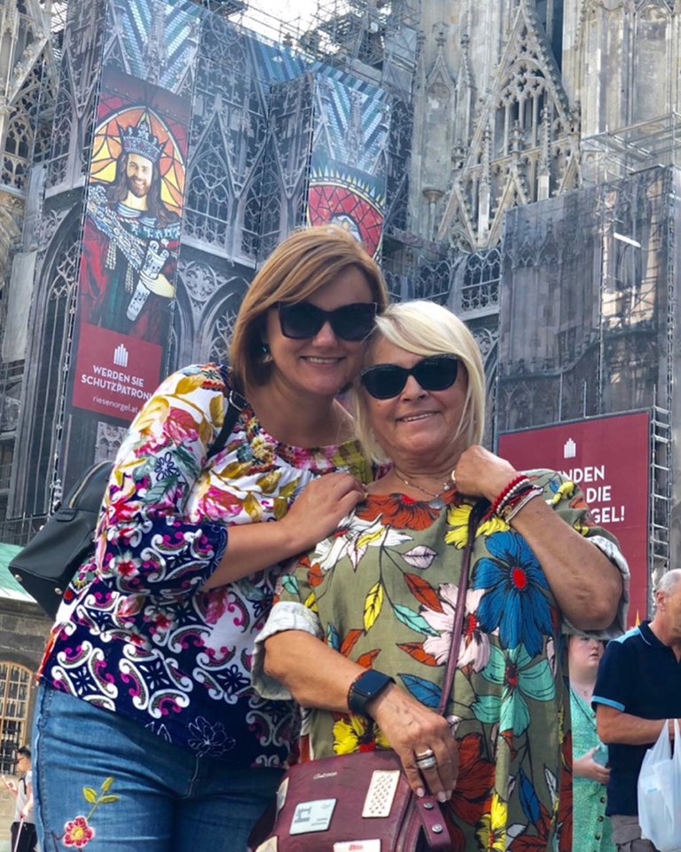 Recent, artista a fost într-o scurtă vacanță la Viena, însoțită de o bună amică, alături de care s-a pozat în fața unei catedrale impunătoare din capitala Austriei.