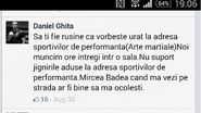 ”Să-ți fie rușine că vorbești urât la adresa sportivilor de performanță (arte marțiale). Noi muncim ore întregi într-o sală. Nu suport jignirile aduse la adresa sportivilor de performanță. Mircea Badea, când mă vezi pe stradă ar fi bine să mă ocolești”, îi scria Ghiță lui Badea în 2014.