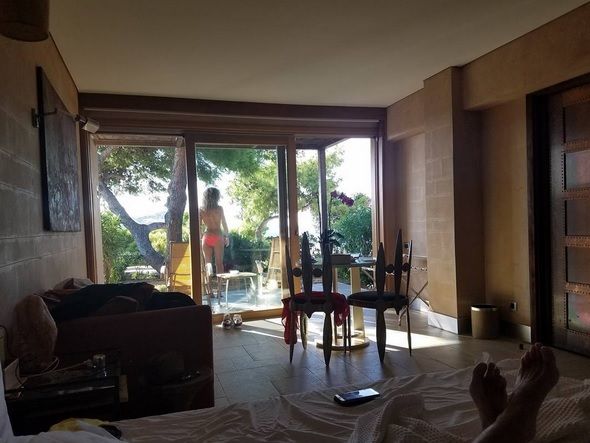 Aflat in pat, Mircea a surprins momentul in care Carmen isi incepea dimineata pe terasa camerei, in costum de baie, iar privelistea e demna de invidiat.