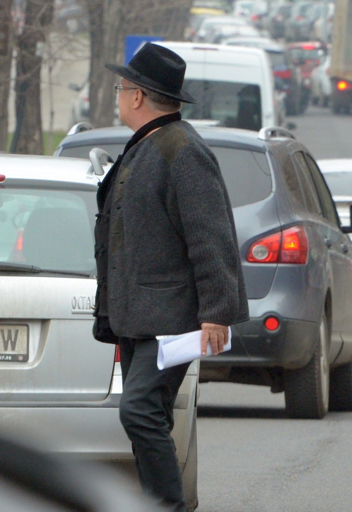 Inarmat cu un manuscris important in mana, Dinescu parea destul de preocupat si la un moment dar chiar a inceput sa vorbeasca singur... pe strada.
