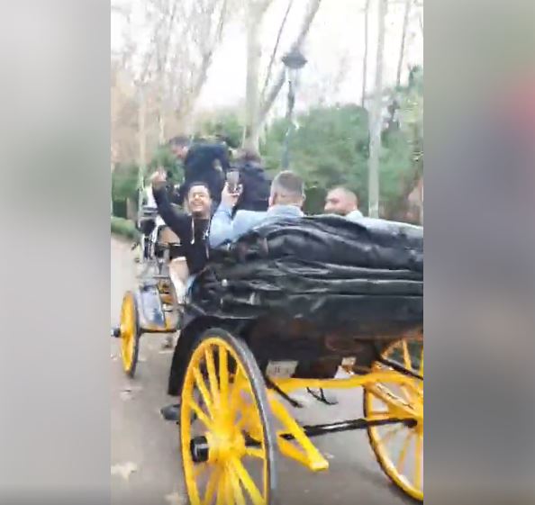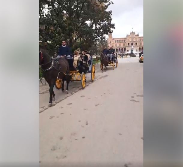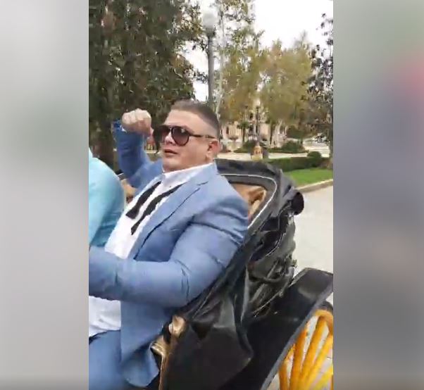 Mircea Nebunu, plimbat cu caleașca prin Piața Spaniei din Sevilla! Show total la o nuntă de români