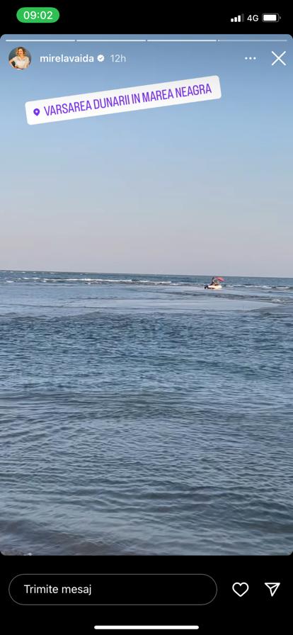 „În acest punct Dunărea întâlnește Marea Neagră, una dintr-un sens, cealaltă din celălalt sens, se întâlnesc, se îmbrățișează și rămâne o porțiune neacoperită, unde stă barca aceea, acolo se îmbrățișează ele. După atâta drum pe care îl străbat ăsta este punctul de întâlnire aici, la Sfântul Gheorghe.”, a spus Mirela Vaida pe Instagram.