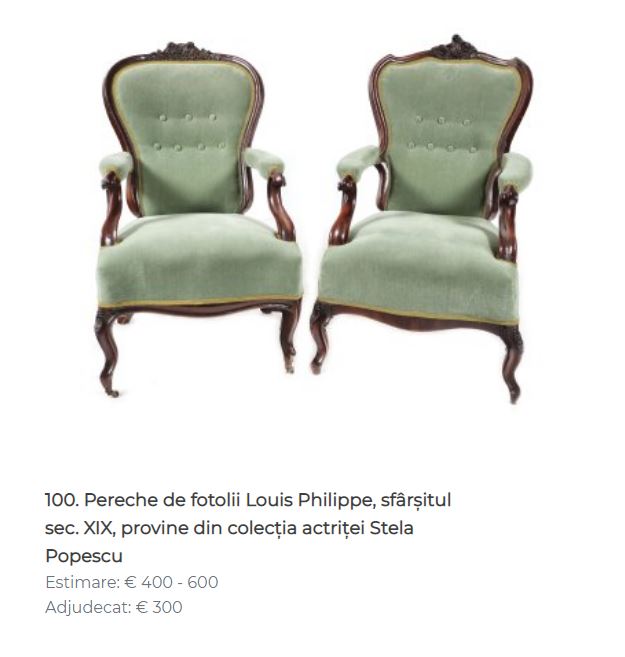 La licitația care a avut loc la finalul săptămânii trecute au fost scoase la vânzare zeci de obiecte ce au aparținut actriței care a fost considerată ”Doamna Teatrul de Revistă”. Bună parte dintre acestea au fost vândute, printre acestea aflându-se și câteva piese de mobilier care se aflau în casa Stelei Popescu aflată în centrul Capitalei.