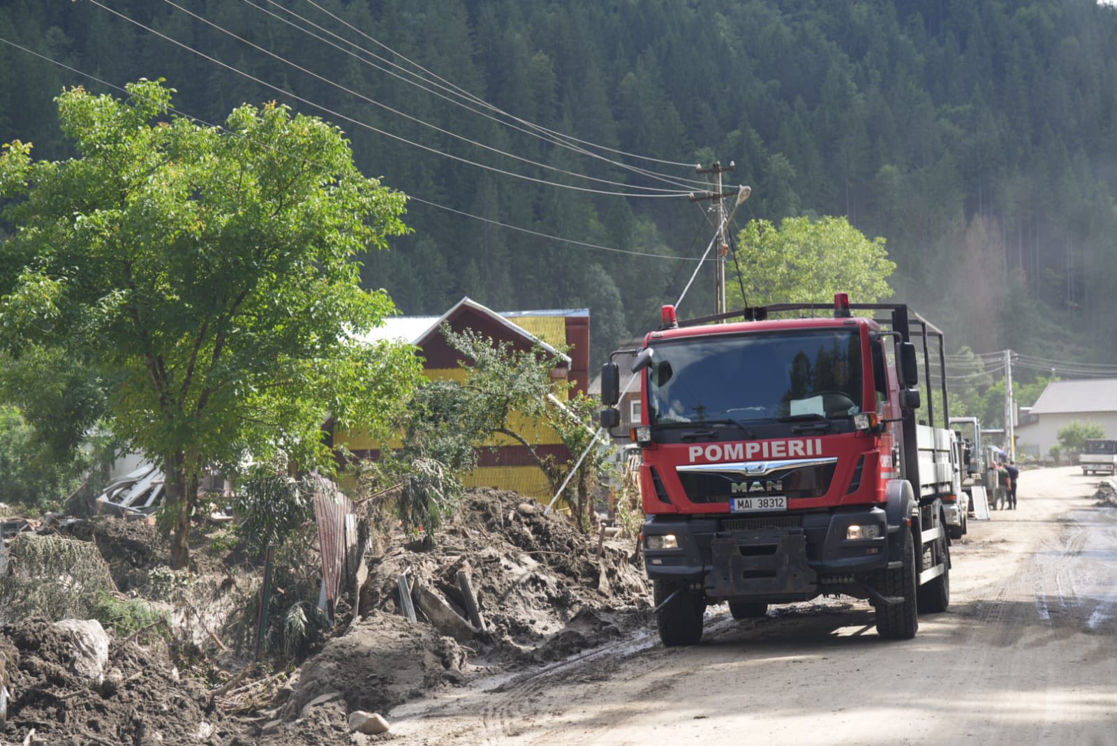 Pe lângă pompierii veniți din toată țara, sute de voluntari s-au mobilizat pentru a salva orașul Broșteni, grav afectat de inundații.