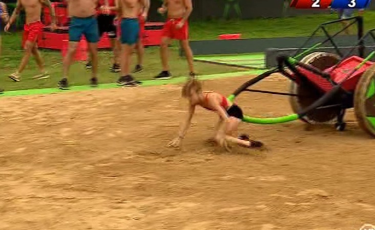 Este vorba de Anca Surdu, una din concurentele dine chipa celor „Faimosi”. In timpul unei probe, carul pe care a trebuit sa il tina dupa ea, a cazut peste spatele ei, iar momentul le-a dat palpitatii tutulor celor din echipa.