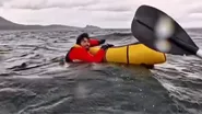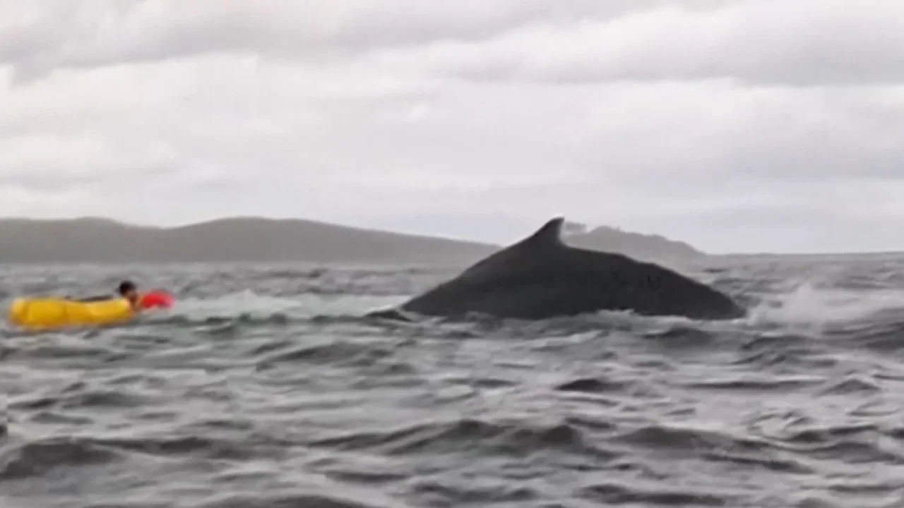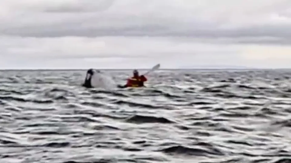 Scene uluitoare au fost filmate în apele din Chile, acolo unde un tânăr de 24 de ani a trăit experiența vieții sale, după ce a fost „înhățat” de o balenă cu cocoașă în timp ce se afla într-o excursie cu caiacul.