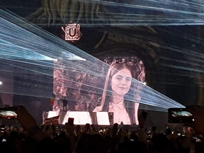 Timp de câteva minute, fotografia adolescentei a fost proiectată pe ecran, iar artistul a transmis și un mesaj. „Ne vei lipsi, nu vei fi uitată! Pentru Alexandra, oriunde ai fi”, au fost cuvintele rostite de el pe scena Cluj Arena. El i-a rugat pe spectatori să aprindă lanternele telefoanelor în memoria ei.