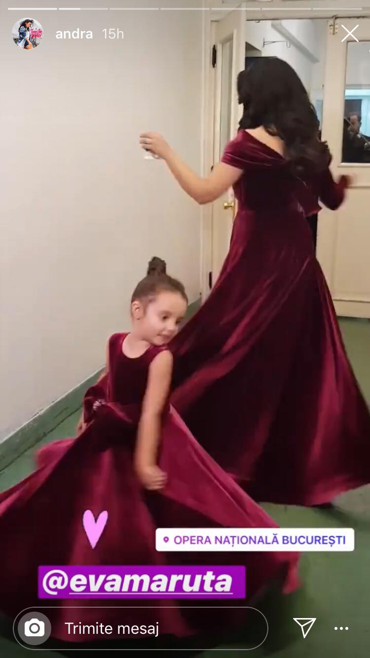 Andra și fiica au oferit un spectacol uimitor pentru care Eva s-a pregătit zile la rând. Spectacolul a fost cu atât mai special cu cât. Andra și Eva au fost îmbrăcate la fel, în rochii roșii, lungi până în pământ.