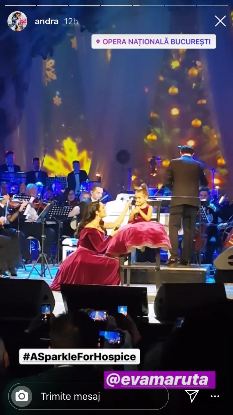 spus Andra, vizibil emoţionată.Andra și Eva au cântat împreună un frumos colind care a adus emoție și lacrimi de bucurie în rândul fanilor prezenți în sală.