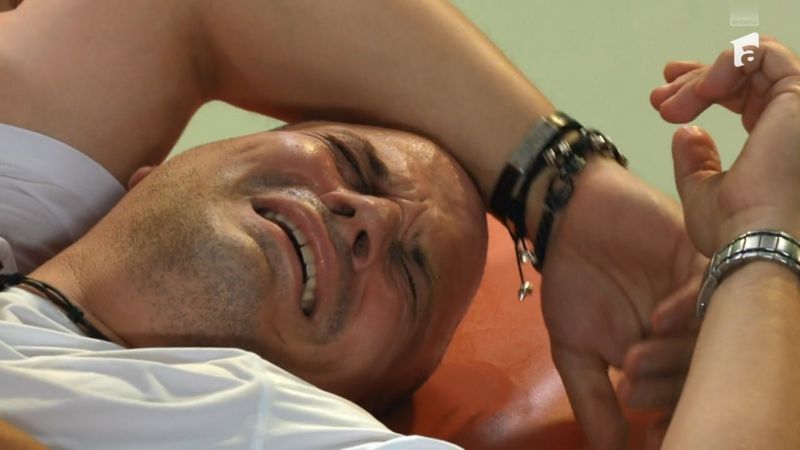 Cu cât durerea creștea în intensitate, cu atât a fost mai greu pentru Vlad Huidu să reziste. Au fost momente în care Giulia a crezut că soțul ei va renunța, însă, în ciuda probei extrem de dificile, acesta a reușit să termine în lacrimi. Artista recunoaște, mai în glumă, mai în serios, că s-a uitat prin preajmă să vadă dacă există un defibrilator în cazul în care situația ar fi scăpat de sub control.