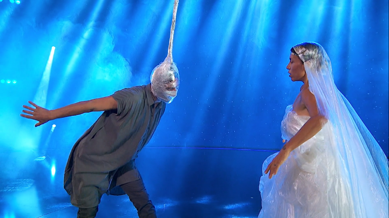 Cei doi argentinieni au prezentat un act artistic încărcat de simbolistică, dar şi un manifest împotriva deşeurilor de plastic, dat fiind că Mauricio a avut faţa acoperită cu un celofan în timpul numărului prezentat la Românii au Talent, iar partenera sa, Natalia, a purtat o rochie din plastic.