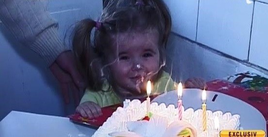 Moment unic pentru Andreea, fetita care traieste in bezna! Micuta a gustat tort pentru prima data in viata! Uite cum a reactionat