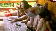 In timp ce se aflau pe veranda casei si se relaxa alaturi de "faimosi", Claudia a observat o scena interesanta. Catalin Cazacu se relaxa in bratele colegei lor, Diana.