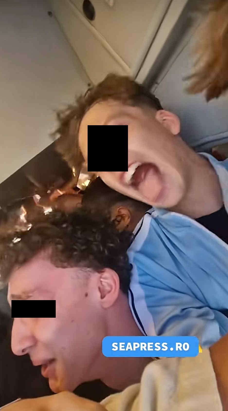 Niciunul dintre ei nu a încercat, însă, să îl oprească. Un alt pasager a filmat întregul moment, amuzându-se pe seama gestului inconștient făcut de băiat.