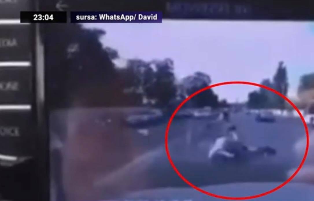 Momentul în care bărbatul de pe trotinetă a ajuns sub roțile unui autoturism a fost surprins chiar de camera de bord a mașinii respective. Atenție, imagini cu puternic impact emoțional!