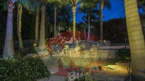 In spatele casei este amenajata, printre palmieri, o terasa de pe care se poate observa Oceanul Pacific. In ciuda faptului ca a achizitionat o casa spectaculoasa, Mr. Pink nu a fost multumit de cum arata interioarele acesteia.