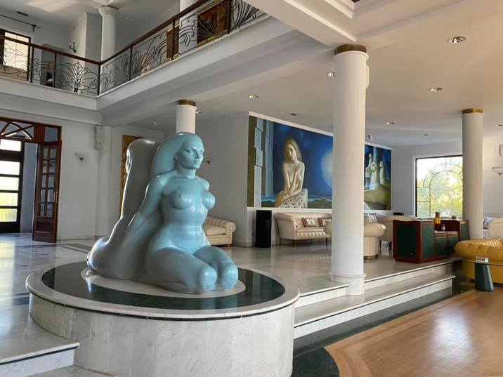 ”În acest moment, întreaga pictură murală este scrum. A fost afectată integral! Practic nu mai există! De asemenea, statuia realizată de Sabin Bălașa, despre care se credea că este din marmură, dar care era, de fapt, din plastic turnat, a fost puternic afumată. Din fericire, aceasta s-a prăbușit în piscina de sub living și este încă întreagă. Această sculptură este singura care mai există din toate operele de artă din casă și chiar dacă nu a fost afectată de flăcări, a fost afumată foarte puternic”, a declarat după incendiu Eduard Uzunov, reprezentantul companiei Regatta.