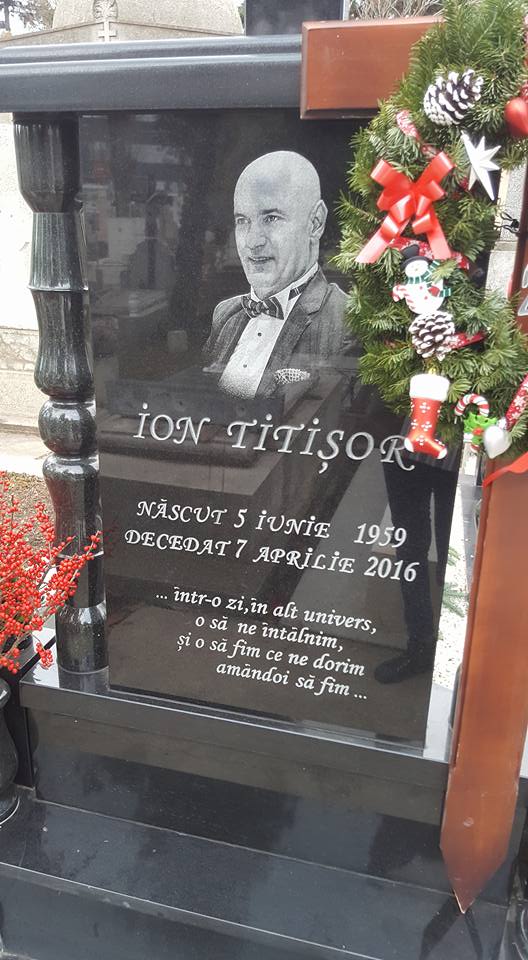Monument impresionant de marmaura neagra pentru Fane Spoitoru! Locul de veciu e impodobit de sarbatoare, iar pe cruce au fost scrise versuri triste si tulburatoare