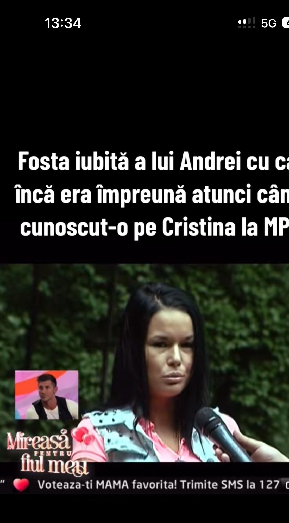 „Îmi vine să cred că sunt într-un film, dar Andrei a mai făcut o dată chestia asta. Când m-a întâlnit pe mine el era într-o relație, noi ne-am cunoscut la un show matrimonial. Fusese înșelat la vremea respectivă și s-a descotorosit foarte ușor de relația anterioară”, a spus Cristina, în cadrul emisiunii matrimoniale.