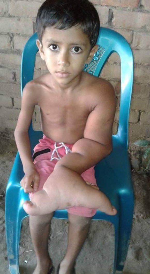 Micutul Tajbir Akhtar, in varsta de 5 ani, sufera de gigantism la unul din membre. Copilul are un brat crescut inexplicabil mai mare decat celelalte, iar doua degete sunt gigantice.